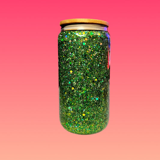 Tazza Glitterata da 475 ml in Vetro Doppio con Tappo Verde Acqua e Cannuccia Inclusa!