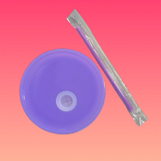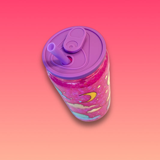 Tazza Glitterata da 475 ml in Vetro Doppio con Tappo Viola Stile Lattina e Cannuccia Inclusa!